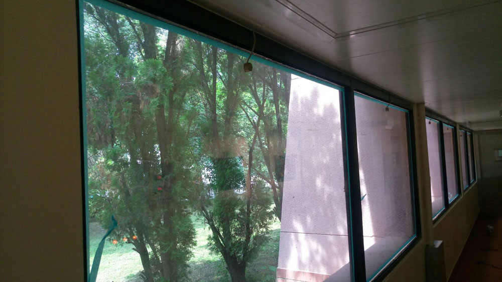 施工前依各區域功能進行評估,包含辦公區、實驗相關區域與走道採光面,選擇兼顧透光與隔熱的膜材,降低紅外線熱能滲入,同時阻隔紫外線對內部設備、塑材與文件的長期影響,減少老化與褪色問題。