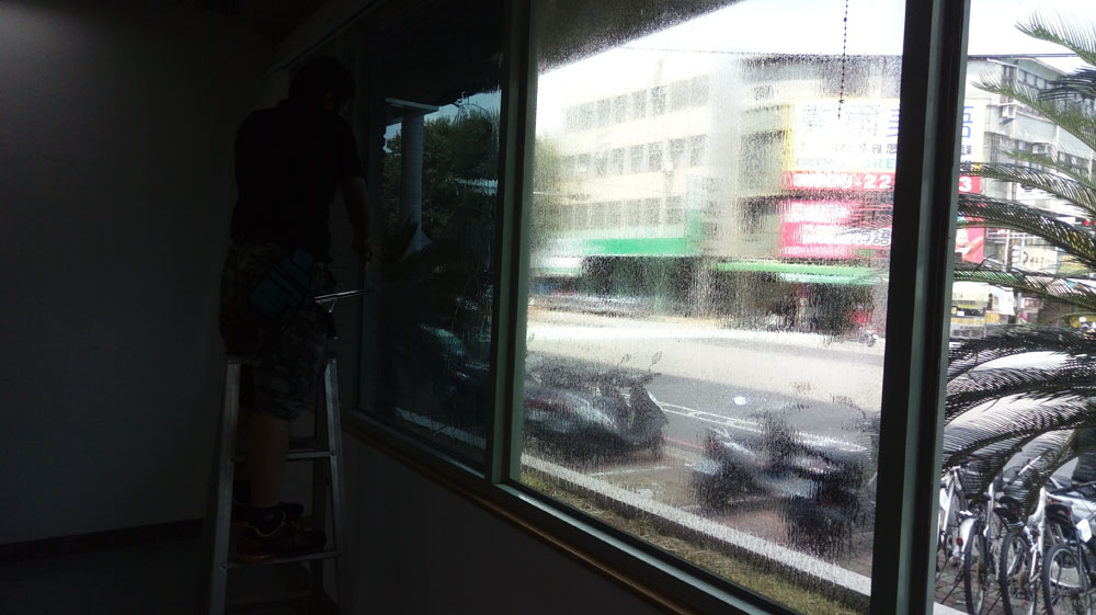 施工團隊在貼覆過程中控制貼合速度與刮除水分方式,避免出現水痕與氣泡,收邊整齊一致,確保公共空間外觀維持俐落乾淨,不影響機關形象。