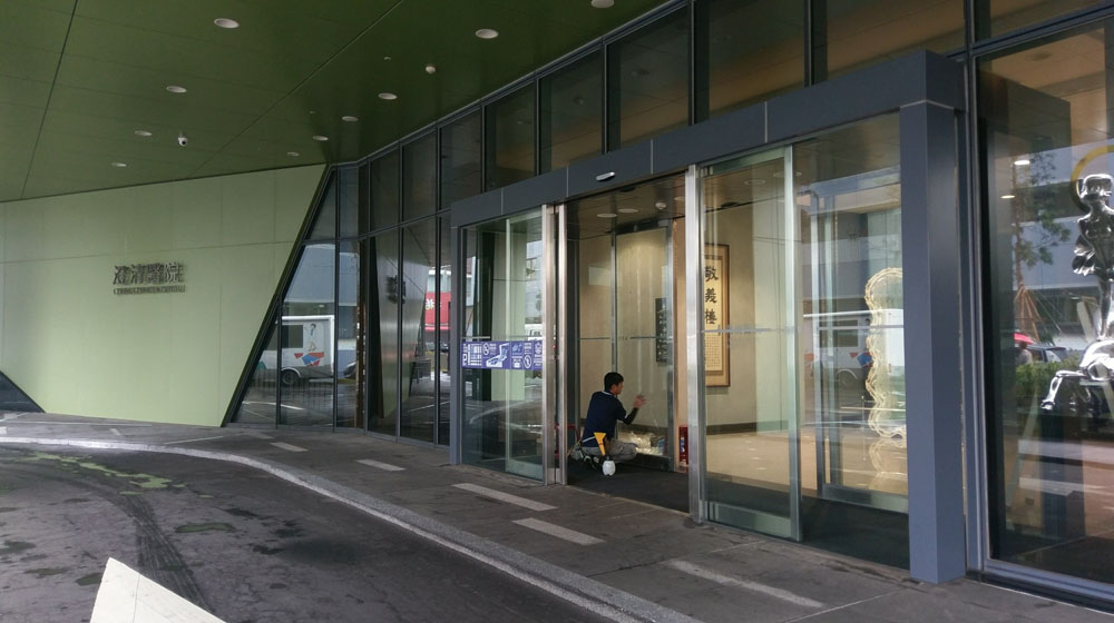 中港澄清醫院大門屬於醫療院所最核心的出入口動線,人流密集且推床、輪椅頻繁進出,玻璃門面必須兼顧視線清晰與安全防護,若發生撞擊或玻璃破裂,容易造成公共安全疑慮,因此本案以大門透明防爆膜提升玻璃安全為主要目標。