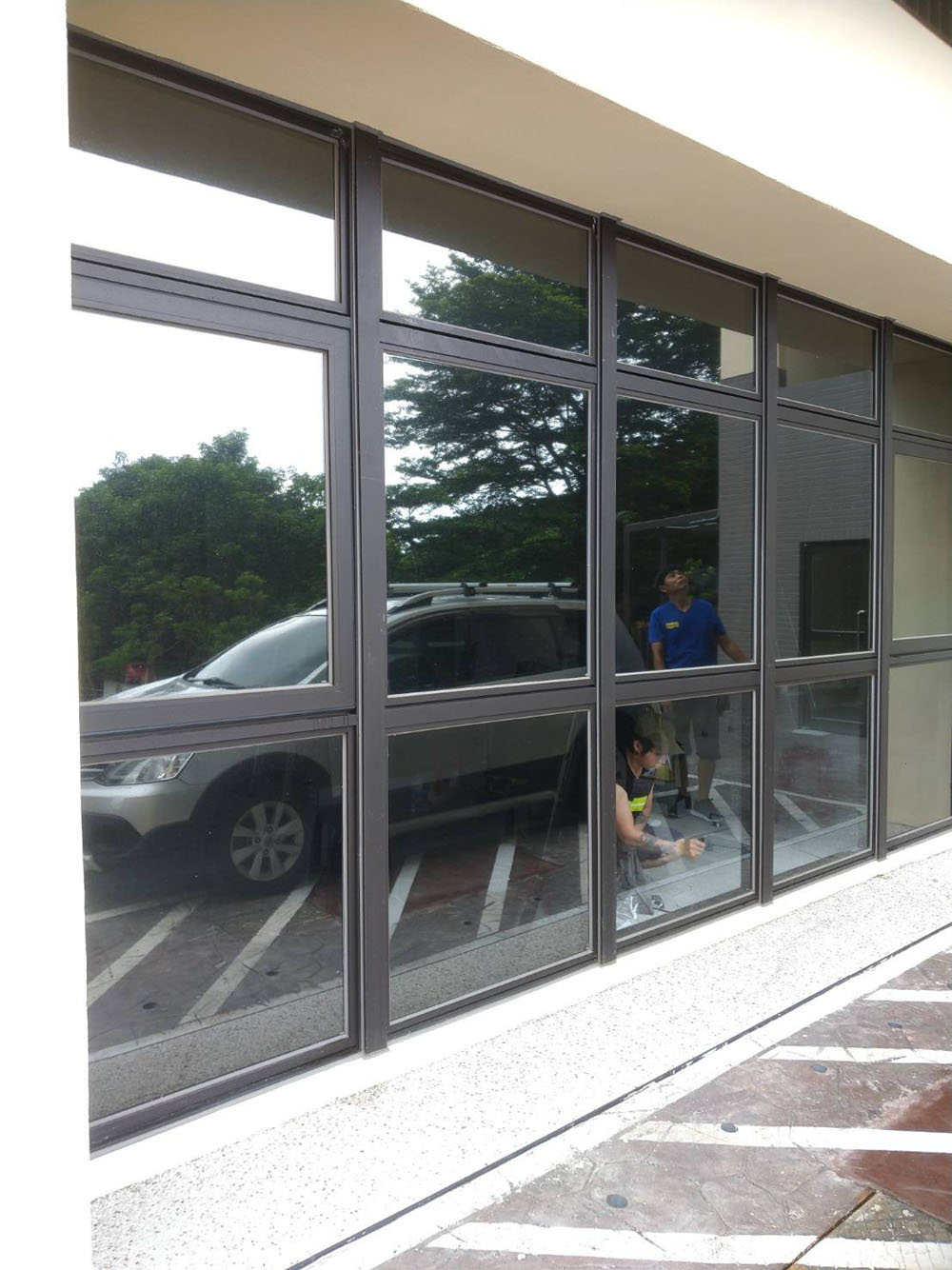 貼膜施作時特別重視圖樣對齊、接縫一致與收邊乾淨,避免圖案歪斜或邊界不齊影響觀感,同時控制貼合平整度,確保磨砂效果均勻,不產生水痕與氣泡。