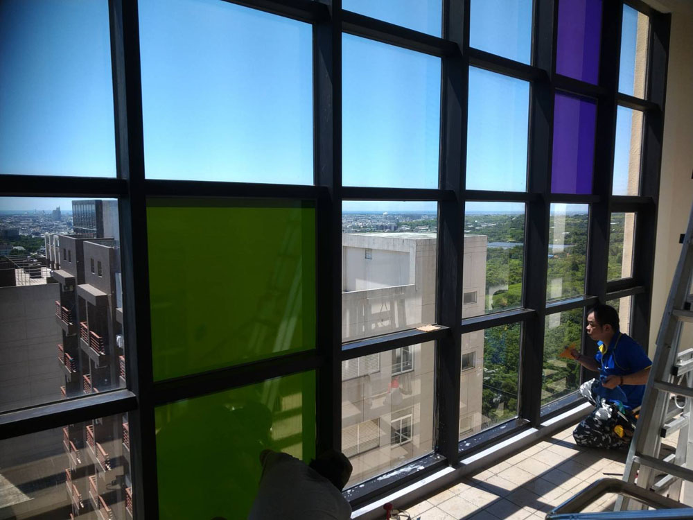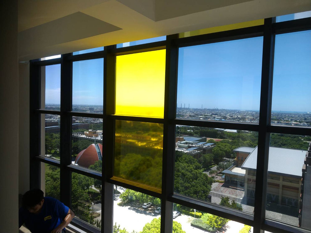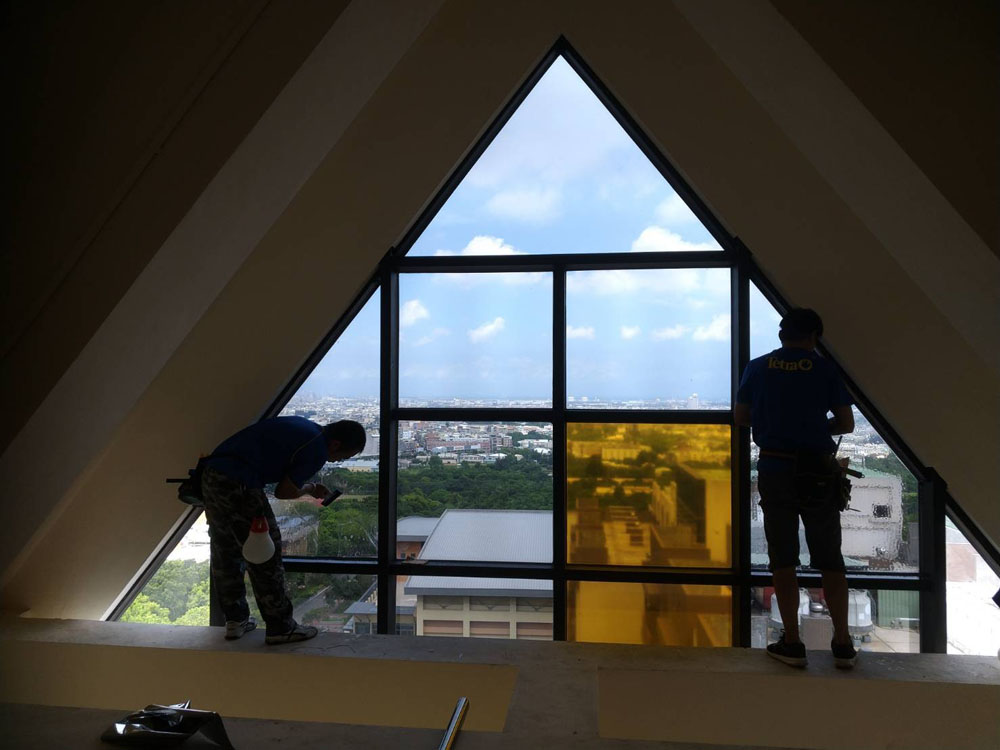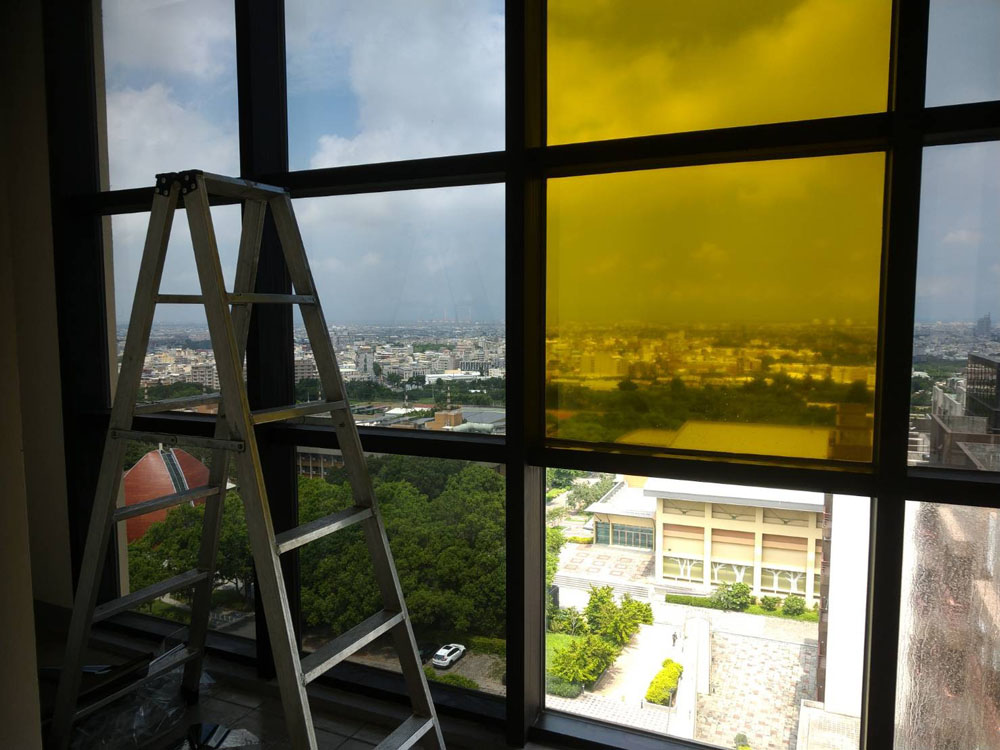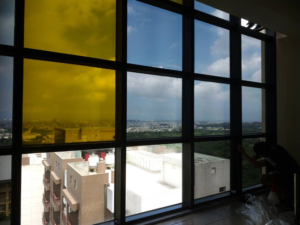 靜宜大學善牧學院本案在隔熱改善之外,亦有空間識別與隱私需求,部分區域需降低外部視線干擾,同時保留採光與提升整體質感,因此規劃上採用彩繪磨砂隔熱紙,讓隔熱功能與視覺設計同步落實。