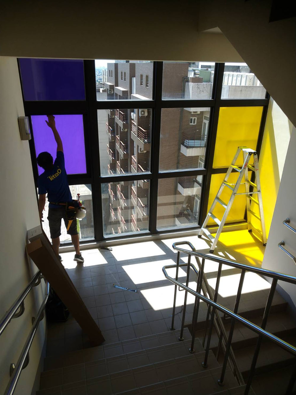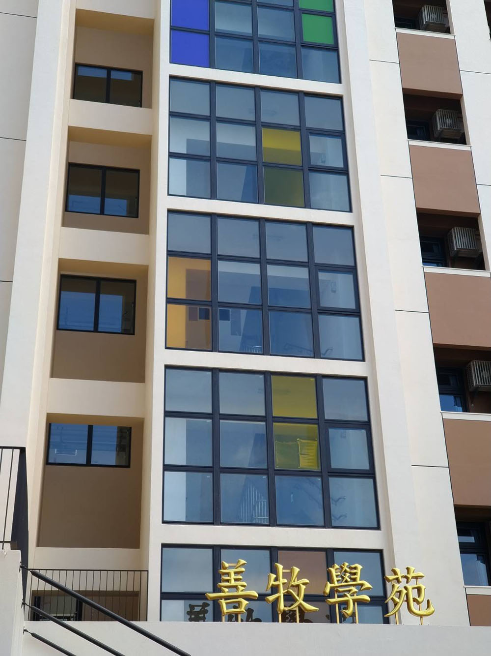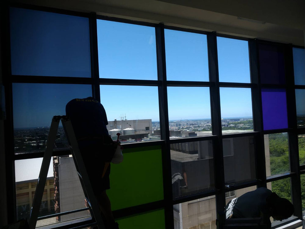 靜宜大學善牧學院本案在隔熱改善之外,亦有空間識別與隱私需求,部分區域需降低外部視線干擾,同時保留採光與提升整體質感,因此規劃上採用彩繪磨砂隔熱紙,讓隔熱功能與視覺設計同步落實。