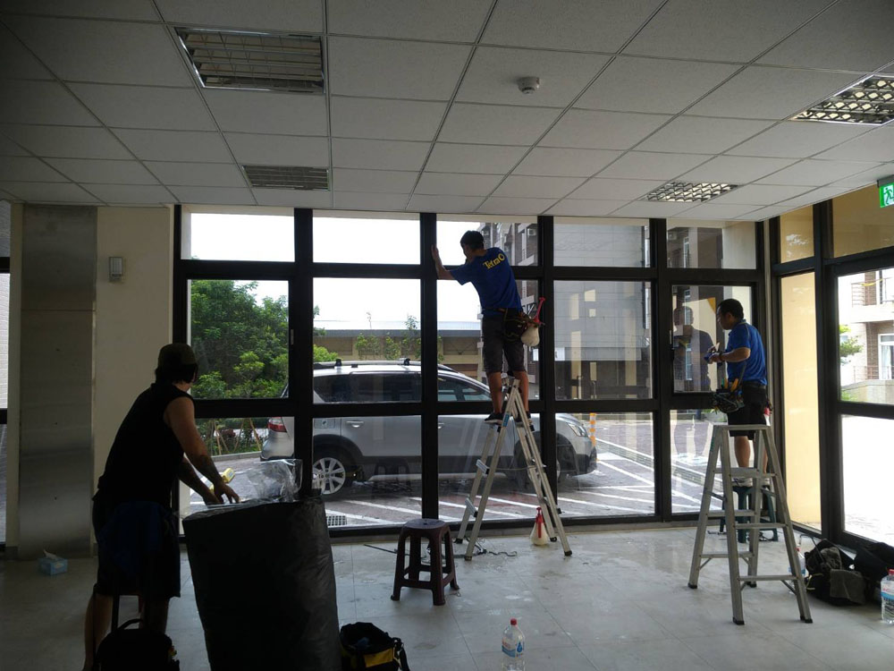 施工前先確認各窗面用途與動線關係,針對需要遮蔽的區域設計磨砂遮蔽高度與圖樣配置,使室內仍保有明亮採光,但外部不易直視,提升使用隱私感,並透過隔熱機能降低日照熱能進入,改善午後悶熱。