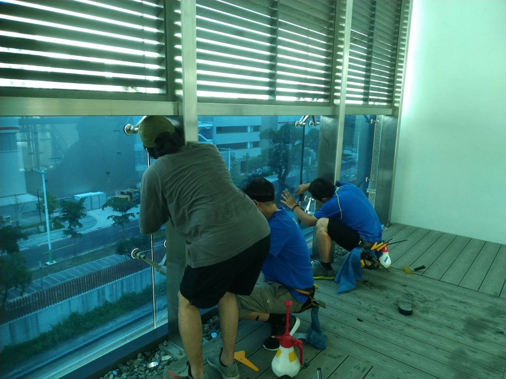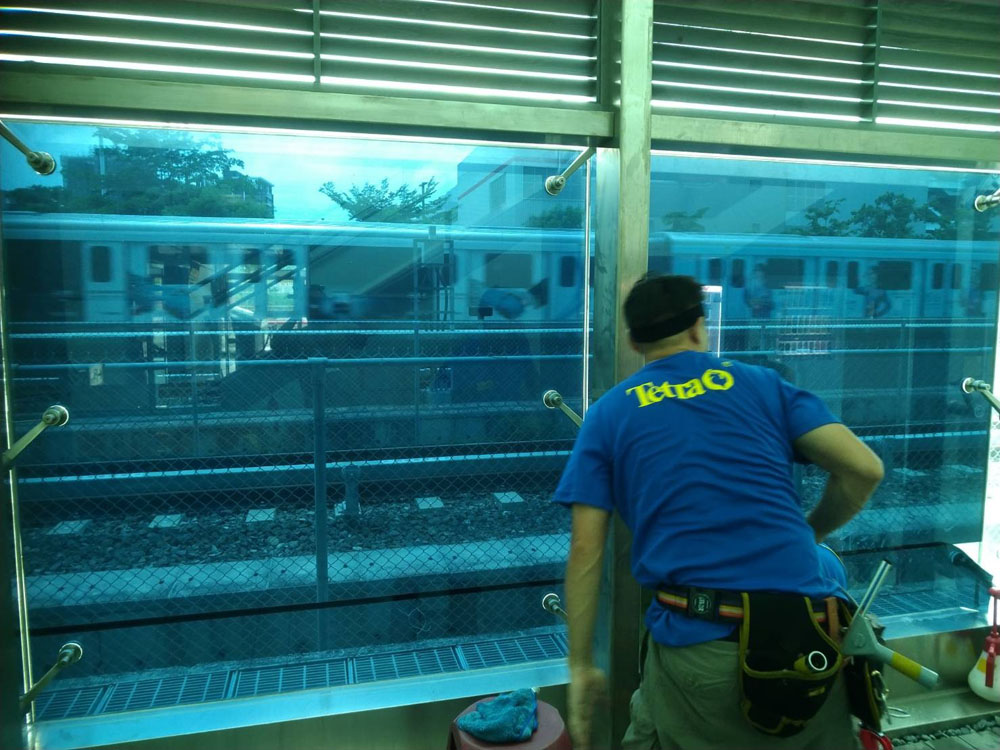 貼膜施工重視大面積玻璃的平整度與接縫一致,收邊整齊不影響清潔維護,並在完工後逐面檢查貼合品質與外觀一致性,確保公共場域長期使用的耐用度。