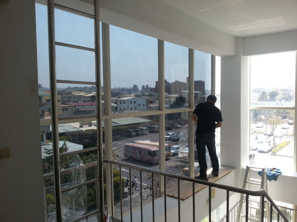 施工時特別注意貼膜平整度與邊角收邊,讓窗面外觀一致整潔,避免產生波紋與視覺扭曲,確保洽公窗口與內部辦公視線清晰,維持公共機關應有的明亮與專業形象。